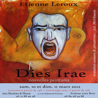 Petite composition pour & avec Etienne Leroux Petite piraterie sur mozart + un poeme d'EL + le feu + la séquence grégorienne pour une installation de peintures.